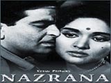 | Film cast: | Jamini Ganeshan, Raj Kapoor, Vyjayantimala, Usha Kiran, Sabia Chatterjee, Agha, Naranjan Sharma, Achla Sachdev, Master Shahid | | Singer: | Asha Bhosle, Lata Mangeshkar, Mohammed Rafi, Mukesh | | Lyricist: | Rajinder Krishan | | Music Director: | Ravi | | Film Director: | C V Sridhar | | Film Producer: | R M Palaniappam, S Krishnamoorty, T Govinda Rajan | | External Links: | Nazrana at IMDB Nazrana at Wikipedia | | Watch Full Movie: | Nazrana at YouTube Nazrana at YouTube |